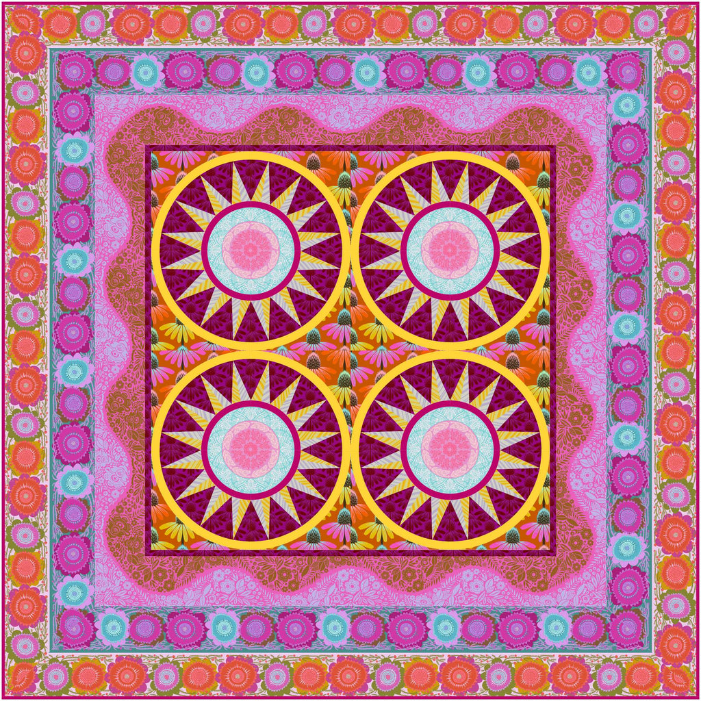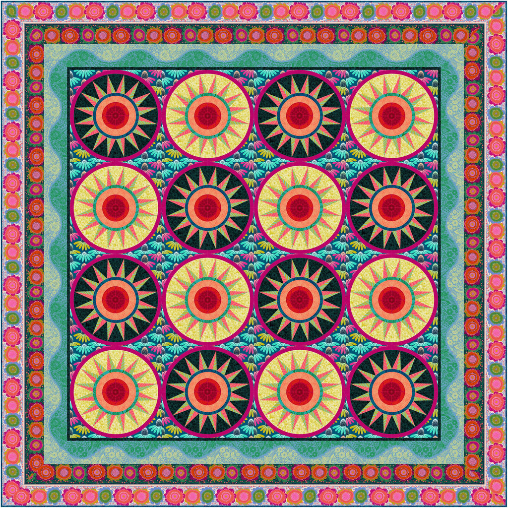 Feature a lengthwise stripe, some border stripes and a circular medallion design in this updated version of the classic New York Beauty block. Let the fabrics take center stage!
